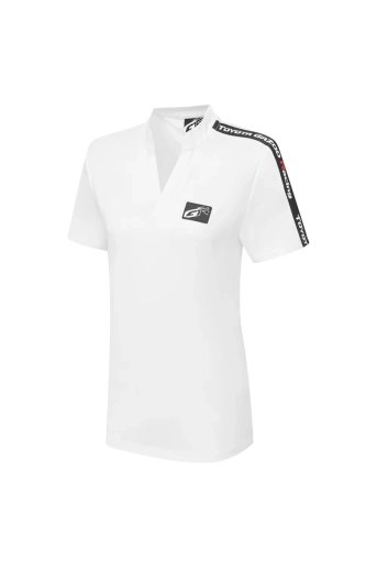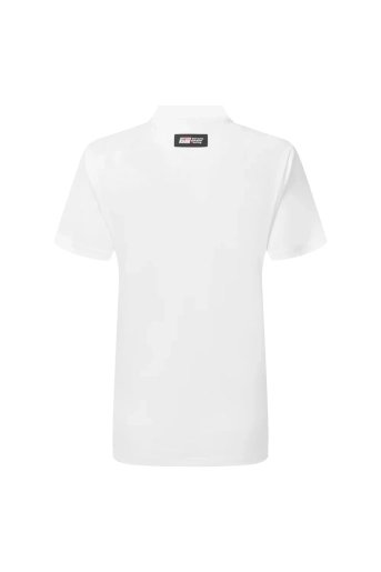 White technical women’s polo inspired by motorsport precision. Lightweight, breathable and designed for everyday performance.